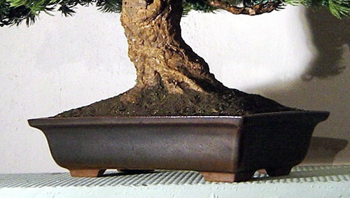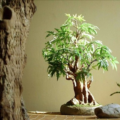 Poznámka : Atelier v několika případech provedl rekonstrukci stromku přírodního. Na zničenou a uschlou bonsaj s pěkným kmenem byly dodatečně přidělány umělé lístky, které prodloužily dekorační použitelnost stromku svému původnímu majiteli.